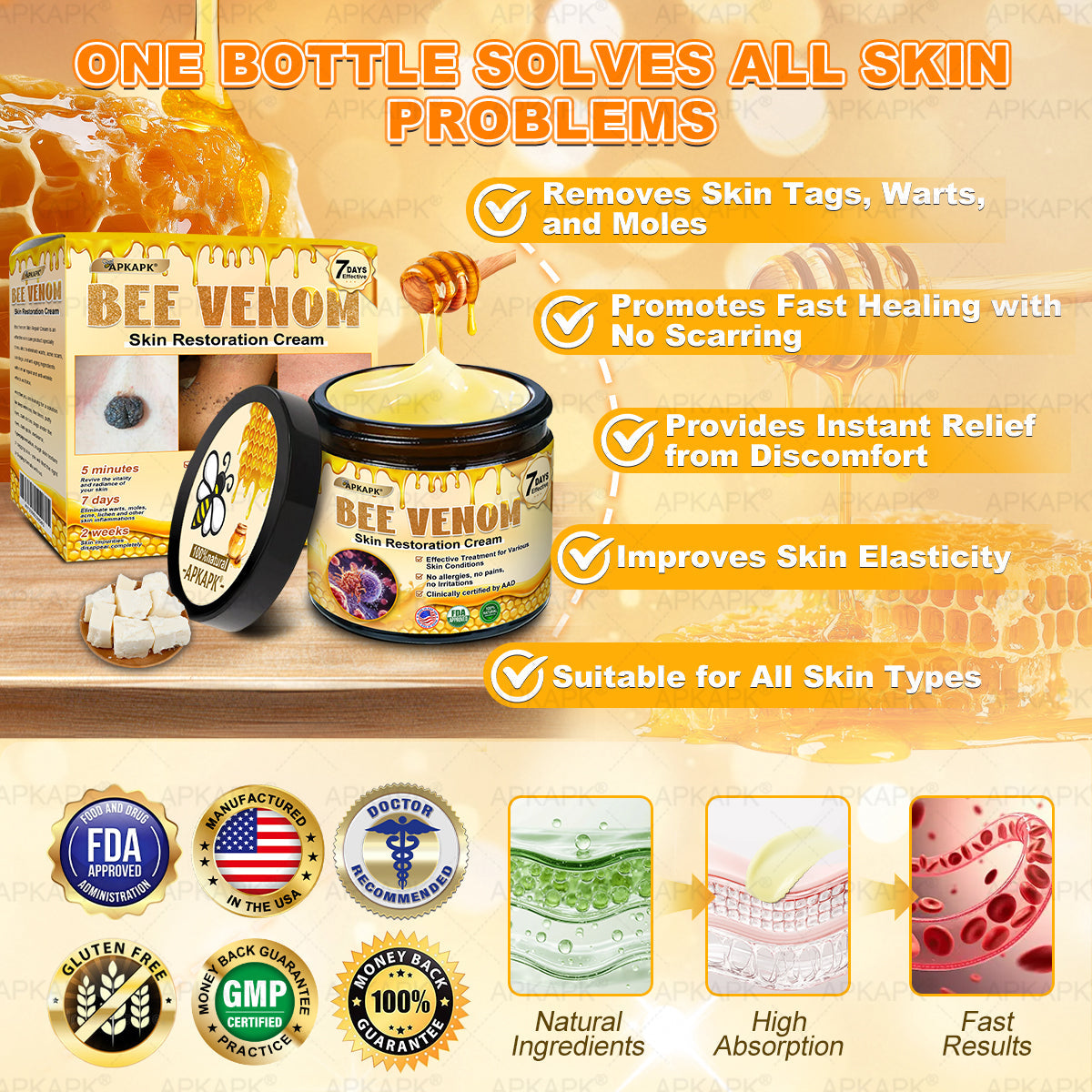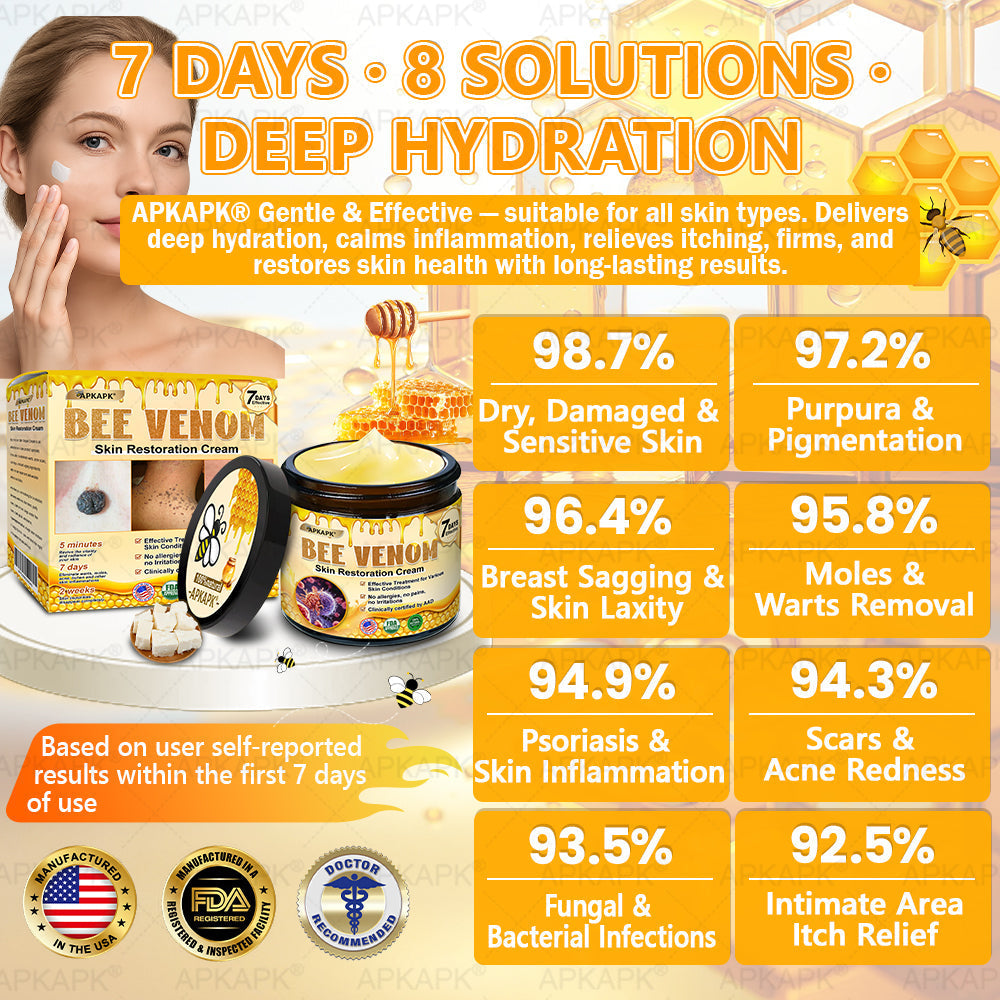 In response, APKAPKยฎ 8-In-1 Bee Venom & Tallow Skin Firming & Treatment Cream was scientifically developed under rigorous standards. Its formula combines the restorative power of natural bee venom and grass-fed tallow, synergized with hyaluronic acid, collagen, vitamin C, centella asiatica, and over ten other potent bioactive ingredients. Together, they deliver multi-dimensional care โ€” from deep hydration and barrier repair to anti-inflammatory relief, itch control, metabolic renewal, tissue restoration, and anti-aging nourishment.ย Clinically validated and produced in GMP-certified facilities compliant with U.S. and EU safety standards, this cream offers a safe, effective, and drug-free multi-repair skincare solution for dryness, inflammation, irritation, and signs of aging โ€” restoring comfort, resilience, and lasting skin health.