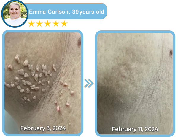 "I had some stubborn skin tags under my arms that were so uncomfortable, especially with the daily friction. I came across this cream online and thought, why not give it a try? Honestly, it'work! After just two days, the tags started to get thinner and darker, and a few days later, most of them had fallen off. The best part? No pain and no scars left behind. I never thought such a cost-effective cream could be such a great solution" - Emma Carlson, Bristol, UK