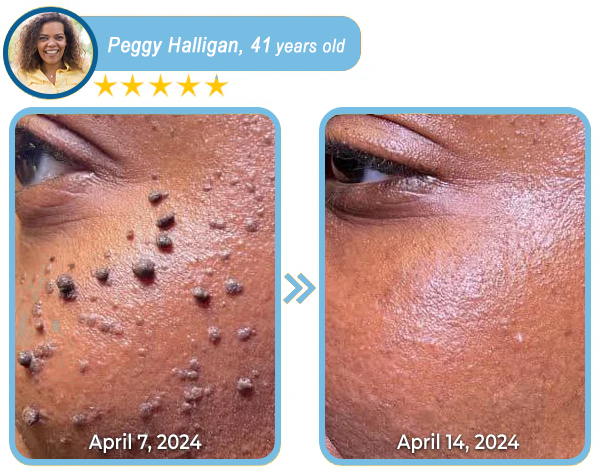 "I've had stubborn skin tags on my face for a while and considered getting laser treatment at a clinic, but the price was too high. I found this cream online, which contains magnesium and is said to be effective for removing skin tags. I decided to give it a try, and the results were amazing! After just two days, the skin tags started softening, and by the fifth day, they fell off on their own. The best part is, the whole process was completely painless. This cream is truly an affordable solution, and it worked wonders for me!" - Peggy Haligan, Manchester, UK