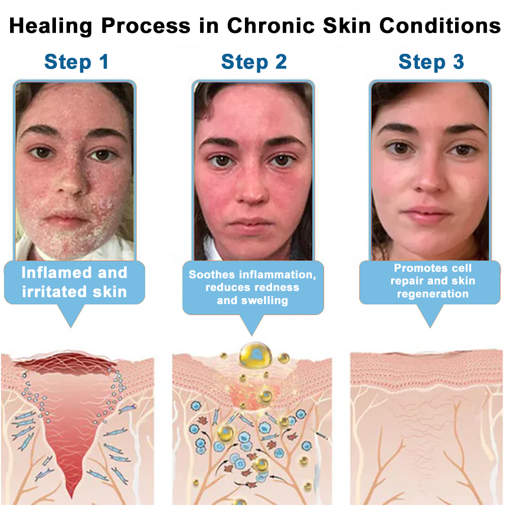 contains seven proven, powerful ingredients that have been used to effectively treat skin issues for millions of people worldwide, including eczema, Psoriasis , acne , dark spots, and skin inflammation.