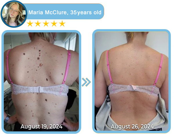 "I've had so many moles on my back and tried everything—medications, oils, sprays—but nothing really worked. I was about to accept it as a long-term issue until I found this cream. By day three, I noticed the moles starting to shrink, and now, after applying it twice daily in the morning and at night, most of them are completely gone! It's such an easy-to-use solution, and I'm so relieved to finally have something that actually works." - Marie McClure, London, UK