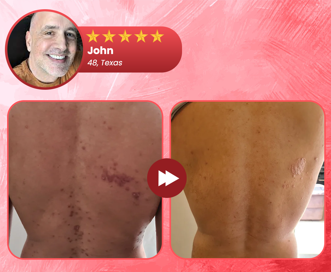 “BQYOOM™ DermSoothe Psoriasis Relief Spray has made a bigger impact on my self confidence. The patches that almost covered my back are completely cleared now. The scaly, flaky skin and redness subsided in just weeks of using this cream. I’m so impressed that I wish I had heard of it sooner, but happy that I did discover it. Amazing product!” - John, 48, Texas