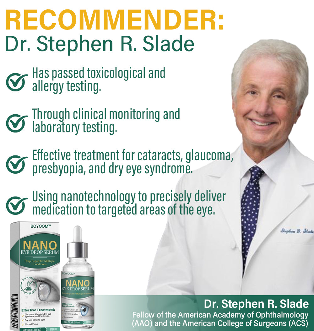 After four years of research, Dr. Stephen R. Slade and the American Academy of Ophthalmology introduced a treatment using advanced nanotechnology for age-related eye diseases. This method utilizes a nano drug delivery system to precisely deliver ingredients to the eye, significantly improving vision. According to a study involving 80,000 participants, 96% of users experienced improved vision, with symptoms of presbyopia and cataracts greatly reduced or eliminated. This innovation enhances the drug's absorption efficiency and therapeutic effects, offering a new solution for eye health in older adults.